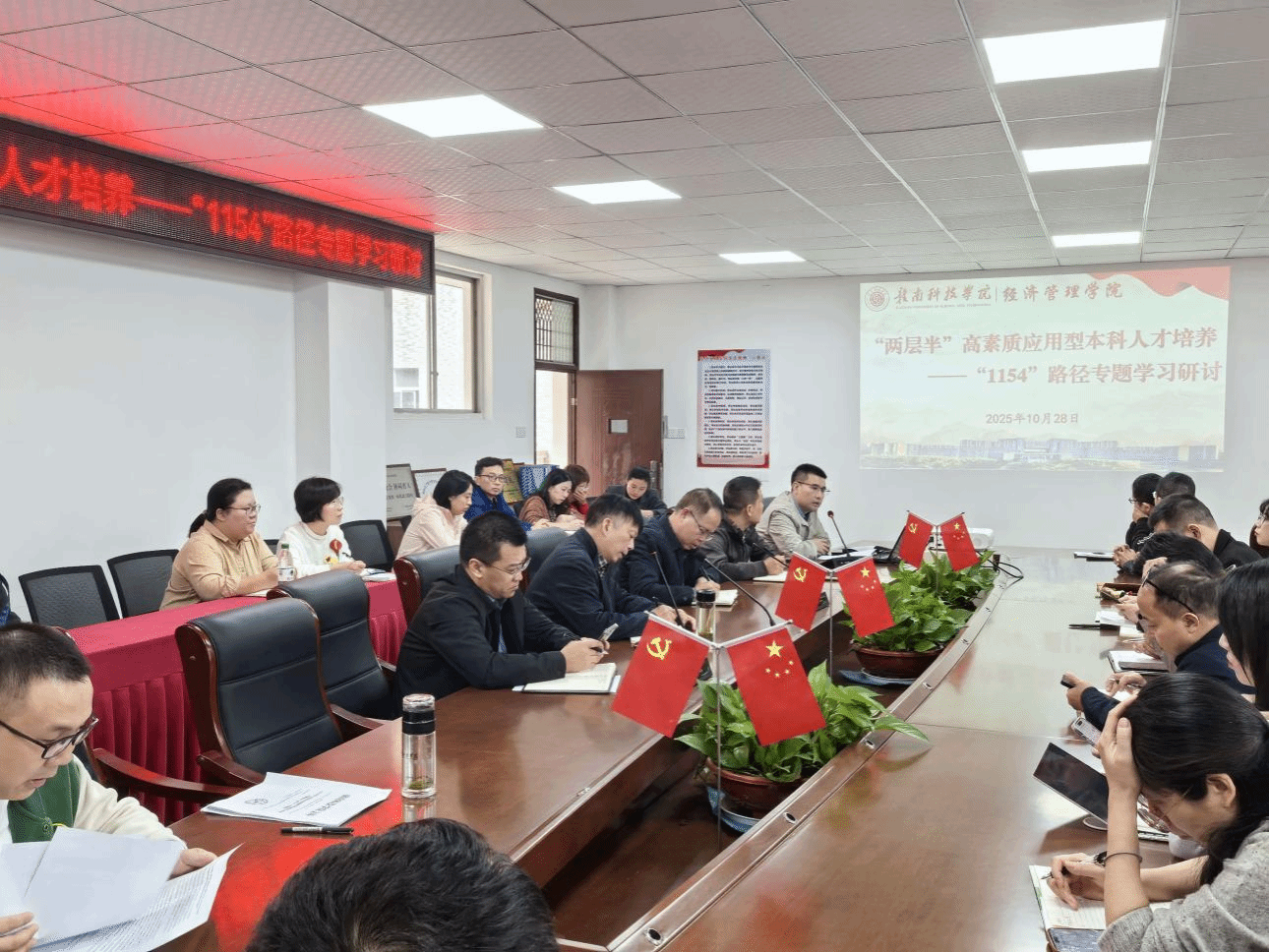 本网讯:2025年10月28日下午,yl6809永利召开“两层半”高素质应用型本科人才培养—“1154”路径专题学习研讨会。yl6809永利领导班子成员、全体专任员工全员参与,会议由yl6809永利党委委员、教学负责人王波主持。