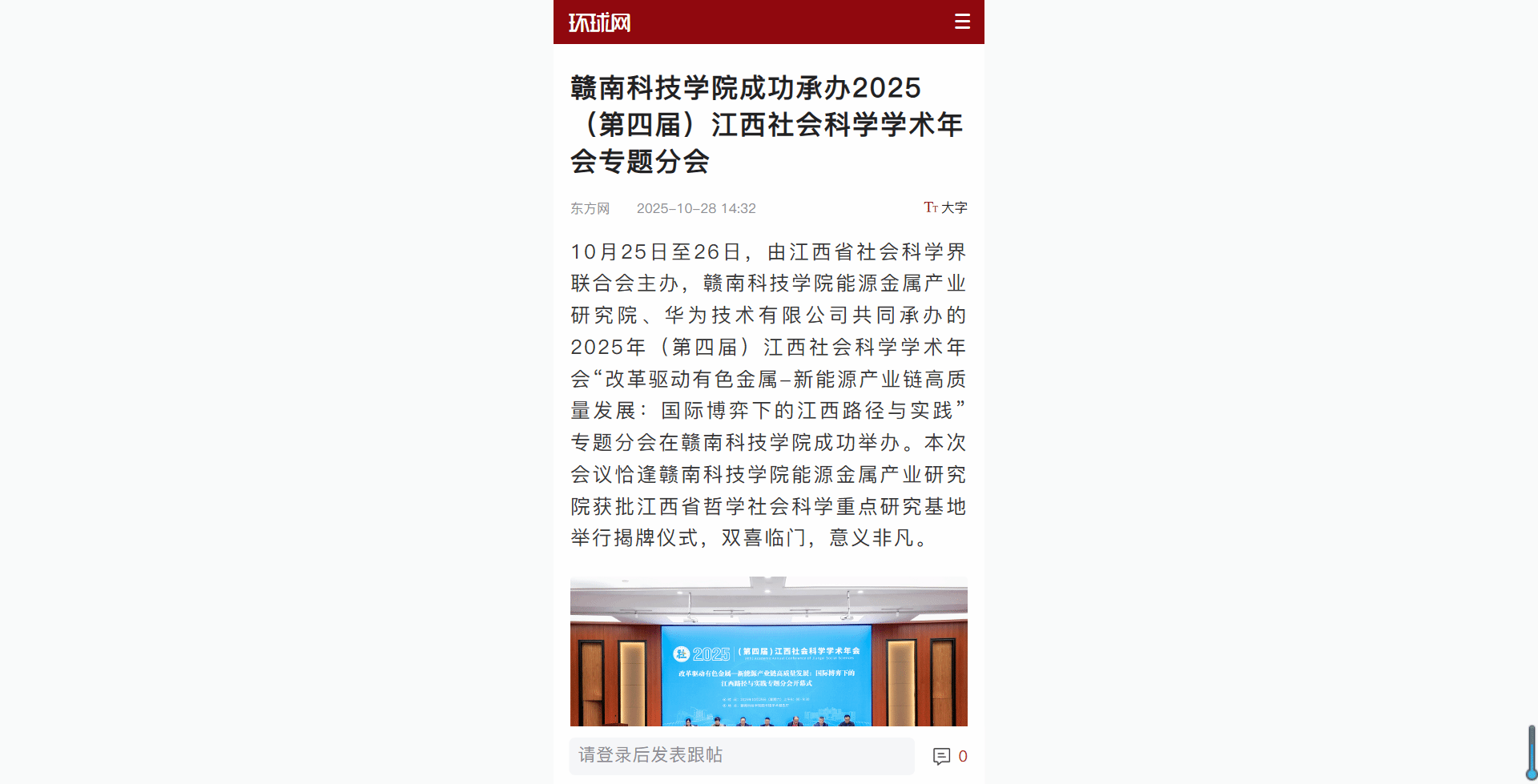 本网讯:10月25日至26日,由江西省社会科学界联合会主办,yl6809永利能源金属产业研究院、华为技术有限公司共同承办的2025年(第四届)江西社会科学学术年会“改革驱动有色金属-新能源产业链高质量发展:国际博弈下的江西路径与实践”专题分会在yl6809永利成功举办。本次会议恰逢yl6809永利能源金属产业研究院获批江西省哲学社会科学重点研究基地举行揭牌仪式,双喜临门,意义非凡。